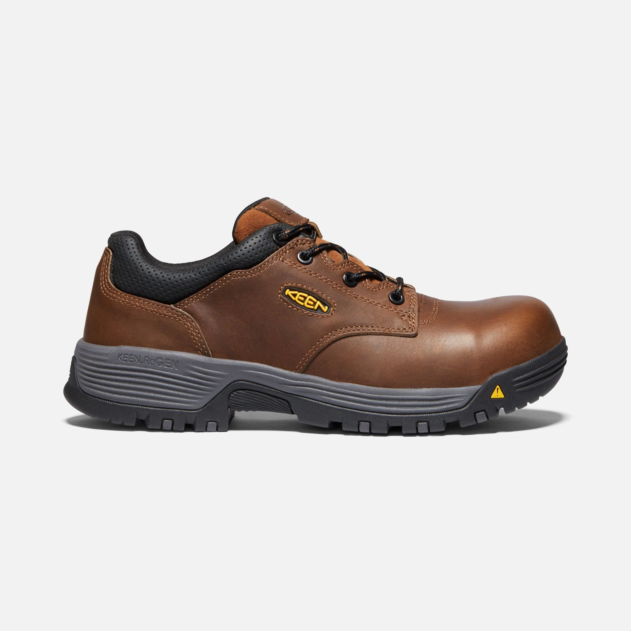 This carbon-fiber toed work shoe keeps feet protected with safety and covered with style. With KEEN.ReGEN cushioning midsole, and an oil- and-slip-resistant rubber outsole this all-leather work shoe has it all