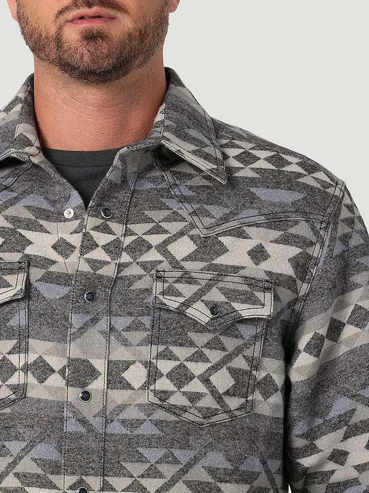 Men's Wrangler Retro Premium Jacquard Snap Shirt Jacket in color Vintage Indigo